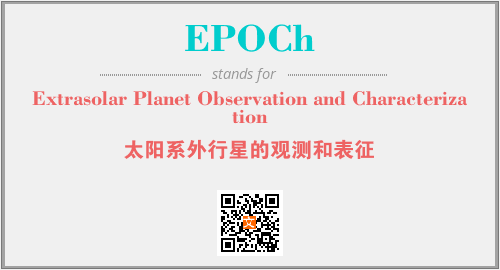 上述内容是“Extrasolar Planet Observation and Characterization”作为“EPOCh”的缩写,解释为“太阳系外行星的观测和表征”时的信息,以及英文缩略词EPOCh所代表的英文单词,其对应的中文拼音、详细解释以及在英文中的流行度和相关分类、应用领域及应用示例等。