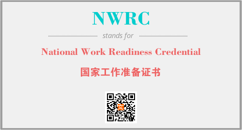 英文缩略词“NWRC”经常作为“National Work Readiness Credential”的英文缩写来使用,中文表示:“国家工作准备证书”。本文将详细介绍英文缩写词NWRC所代表英文单词,其对应的中文拼音、详细解释以及在英语中的流行度。此外,还有关于缩略词NWRC的分类、应用领域及相关应用示例等。