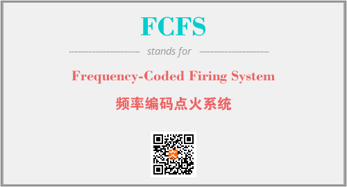 上述内容是“Frequency-Coded Firing System”作为“FCFS”的缩写,解释为“频率编码点火系统”时的信息,以及英文缩略词FCFS所代表的英文单词,其对应的中文拼音、详细解释以及在英文中的流行度和相关分类、应用领域及应用示例等。