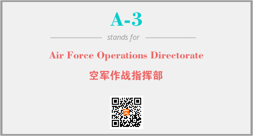 英文缩略词“A-3”经常作为“Air Force Operations Directorate”的英文缩写来使用,中文表示:“空军作战指挥部”。本文将详细介绍英文缩写词A-3所代表英文单词,其对应的中文拼音、详细解释以及在英语中的流行度。此外,还有关于缩略词A-3的分类、应用领域及相关应用示例等。
