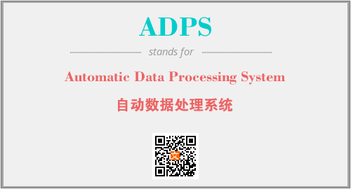 英文缩略词“ADPS”经常作为“Automatic Data Processing System”的英文缩写来使用,中文表示:“自动数据处理系统”。本文将详细介绍英文缩写词ADPS所代表英文单词,其对应的中文拼音、详细解释以及在英语中的流行度。此外,还有关于缩略词ADPS的分类、应用领域及相关应用示例等。