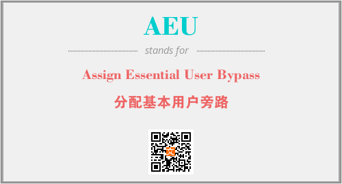 上述内容是“Assign Essential User Bypass”作为“AEU”的缩写,解释为“分配基本用户旁路”时的信息,以及英文缩略词AEU所代表的英文单词,其对应的中文拼音、详细解释以及在英文中的流行度和相关分类、应用领域及应用示例等。