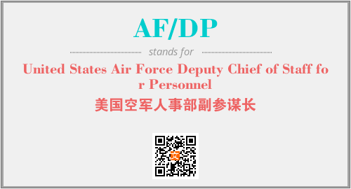 英文缩略词“AF/DP”经常作为“United States Air Force Deputy Chief of Staff for Personnel”的英文缩写来使用,中文表示:“美国空军人事部副参谋长”。本文将详细介绍英文缩写词AF/DP所代表英文单词,其对应的中文拼音、详细解释以及在英语中的流行度。此外,还有关于缩略词AF/DP的分类、应用领域及相关应用示例等。