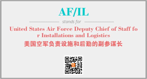 上述内容是“United States Air Force Deputy Chief of Staff for Installations and Logistics”作为“AF/IL”的缩写,解释为“美国空军负责设施和后勤的副参谋长”时的信息,以及英文缩略词AF/IL所代表的英文单词,其对应的中文拼音、详细解释以及在英文中的流行度和相关分类、应用领域及应用示例等。