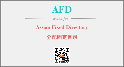 上述内容是“Assign Fixed Directory”作为“AFD”的缩写,解释为“分配固定目录”时的信息,以及英文缩略词AFD所代表的英文单词,其对应的中文拼音、详细解释以及在英文中的流行度和相关分类、应用领域及应用示例等。