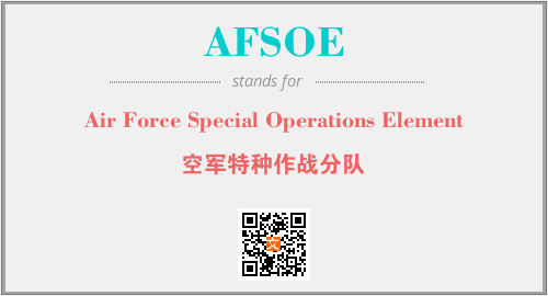 英文缩略词“AFSOE”经常作为“Air Force Special Operations Element”的英文缩写来使用,中文表示:“空军特种作战分队”。本文将详细介绍英文缩写词AFSOE所代表英文单词,其对应的中文拼音、详细解释以及在英语中的流行度。此外,还有关于缩略词AFSOE的分类、应用领域及相关应用示例等。