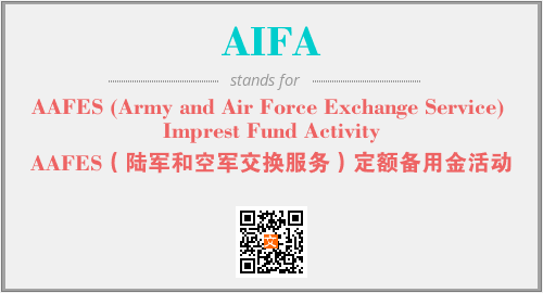 上述内容是“AAFES (Army and Air Force Exchange Service) Imprest Fund Activity”作为“AIFA”的缩写,解释为“AAFES(陆军和空军交换服务)定额备用金活动”时的信息,以及英文缩略词AIFA所代表的英文单词,其对应的中文拼音、详细解释以及在英文中的流行度和相关分类、应用领域及应用示例等。