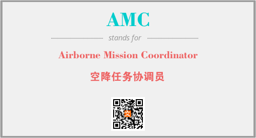 上述内容是“Airborne Mission Coordinator”作为“AMC”的缩写,解释为“空降任务协调员”时的信息,以及英文缩略词AMC所代表的英文单词,其对应的中文拼音、详细解释以及在英文中的流行度和相关分类、应用领域及应用示例等。