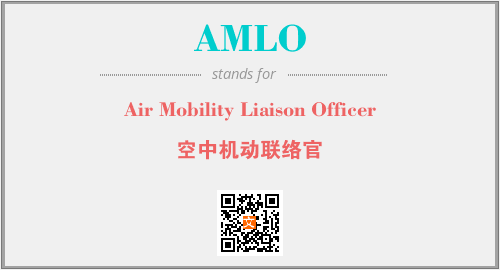 英文缩略词“AMLO”经常作为“Air Mobility Liaison Officer”的英文缩写来使用,中文表示:“空中机动联络官”。本文将详细介绍英文缩写词AMLO所代表英文单词,其对应的中文拼音、详细解释以及在英语中的流行度。此外,还有关于缩略词AMLO的分类、应用领域及相关应用示例等。