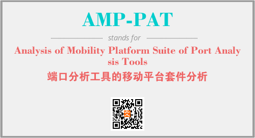 上述内容是“Analysis of Mobility Platform Suite of Port Analysis Tools”作为“AMP-PAT”的缩写,解释为“端口分析工具的移动平台套件分析”时的信息,以及英文缩略词AMP-PAT所代表的英文单词,其对应的中文拼音、详细解释以及在英文中的流行度和相关分类、应用领域及应用示例等。