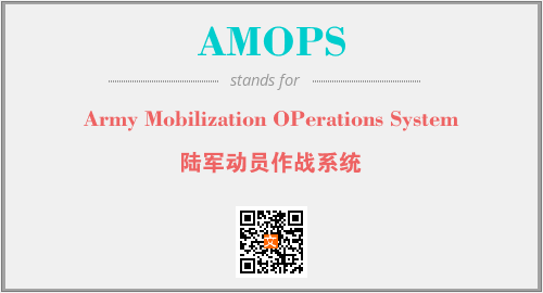 上述内容是“Army Mobilization OPerations System”作为“AMOPS”的缩写,解释为“陆军动员作战系统”时的信息,以及英文缩略词AMOPS所代表的英文单词,其对应的中文拼音、详细解释以及在英文中的流行度和相关分类、应用领域及应用示例等。