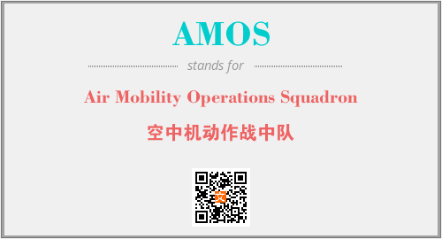 上述内容是“Air Mobility Operations Squadron”作为“AMOS”的缩写,解释为“空中机动作战中队”时的信息,以及英文缩略词AMOS所代表的英文单词,其对应的中文拼音、详细解释以及在英文中的流行度和相关分类、应用领域及应用示例等。