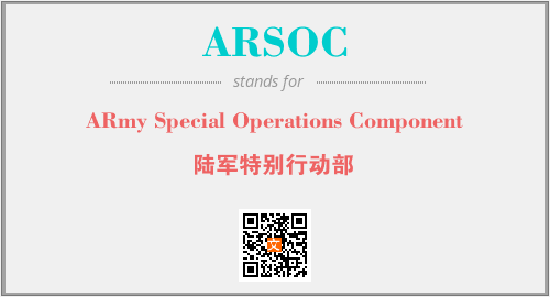 英文缩略词“ARSOC”经常作为“ARmy Special Operations Component”的英文缩写来使用,中文表示:“陆军特别行动部”。本文将详细介绍英文缩写词ARSOC所代表英文单词,其对应的中文拼音、详细解释以及在英语中的流行度。此外,还有关于缩略词ARSOC的分类、应用领域及相关应用示例等。
