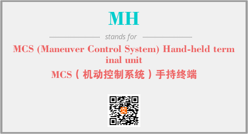 英文缩略词“MH”经常作为“MCS (Maneuver Control System) Hand-held terminal unit”的英文缩写来使用,中文表示:“MCS(机动控制系统)手持终端”。本文将详细介绍英文缩写词MH所代表英文单词,其对应的中文拼音、详细解释以及在英语中的流行度。此外,还有关于缩略词MH的分类、应用领域及相关应用示例等。