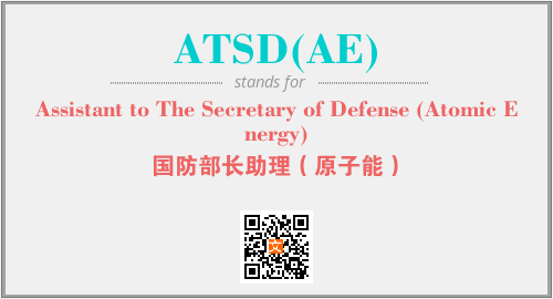 以上为Assistant to The Secretary of Defense (Atomic Energy)英文缩略词ATSD(AE)的中文解释,以及该英文缩写在英语的流行度、分类和应用领域方面的信息。