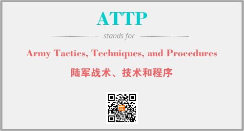 英文缩略词“ATTP”经常作为“Army Tactics, Techniques, and Procedures”的英文缩写来使用,中文表示:“陆军战术、技术和程序”。本文将详细介绍英文缩写词ATTP所代表英文单词,其对应的中文拼音、详细解释以及在英语中的流行度。此外,还有关于缩略词ATTP的分类、应用领域及相关应用示例等。