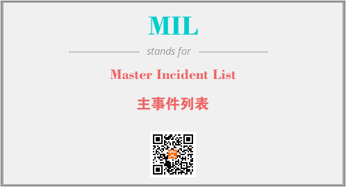 上述内容是“Master Incident List”作为“MIL”的缩写,解释为“主事件列表”时的信息,以及英文缩略词MIL所代表的英文单词,其对应的中文拼音、详细解释以及在英文中的流行度和相关分类、应用领域及应用示例等。