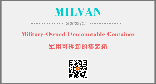 英文缩略词“MILVAN”经常作为“Military-Owned Demountable Container”的英文缩写来使用,中文表示:“军用可拆卸的集装箱”。本文将详细介绍英文缩写词MILVAN所代表英文单词,其对应的中文拼音、详细解释以及在英语中的流行度。此外,还有关于缩略词MILVAN的分类、应用领域及相关应用示例等。