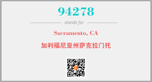 上述内容是“Sacramento, CA”作为“94278”的缩写,解释为“加利福尼亚州萨克拉门托”时的信息,以及英文缩略词94278所代表的英文单词,其对应的中文拼音、详细解释以及在英文中的流行度和相关分类、应用领域及应用示例等。