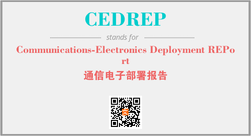 英文缩略词“CEDREP”经常作为“Communications-Electronics Deployment REPort”的英文缩写来使用,中文表示:“通信电子部署报告”。本文将详细介绍英文缩写词CEDREP所代表英文单词,其对应的中文拼音、详细解释以及在英语中的流行度。此外,还有关于缩略词CEDREP的分类、应用领域及相关应用示例等。