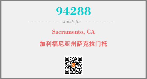 上述内容是“Sacramento, CA”作为“94288”的缩写,解释为“加利福尼亚州萨克拉门托”时的信息,以及英文缩略词94288所代表的英文单词,其对应的中文拼音、详细解释以及在英文中的流行度和相关分类、应用领域及应用示例等。