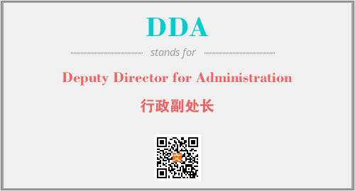 上述内容是“Deputy Director for Administration”作为“DDA”的缩写,解释为“行政副处长”时的信息,以及英文缩略词DDA所代表的英文单词,其对应的中文拼音、详细解释以及在英文中的流行度和相关分类、应用领域及应用示例等。
