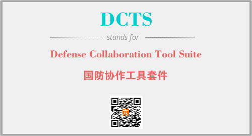 英文缩略词“DCTS”经常作为“Defense Collaboration Tool Suite”的英文缩写来使用,中文表示:“国防协作工具套件”。本文将详细介绍英文缩写词DCTS所代表英文单词,其对应的中文拼音、详细解释以及在英语中的流行度。此外,还有关于缩略词DCTS的分类、应用领域及相关应用示例等。