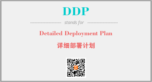 上述内容是“Detailed Deployment Plan”作为“DDP”的缩写,解释为“详细部署计划”时的信息,以及英文缩略词DDP所代表的英文单词,其对应的中文拼音、详细解释以及在英文中的流行度和相关分类、应用领域及应用示例等。