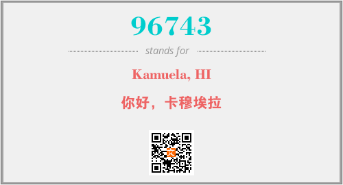 上述内容是“Kamuela, HI”作为“96743”的缩写,解释为“你好,卡穆埃拉”时的信息,以及英文缩略词96743所代表的英文单词,其对应的中文拼音、详细解释以及在英文中的流行度和相关分类、应用领域及应用示例等。