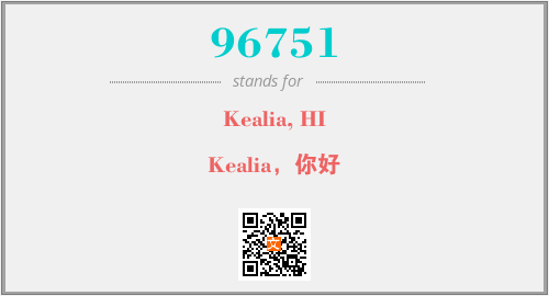 上述内容是“Kealia, HI”作为“96751”的缩写,解释为“Kealia,你好”时的信息,以及英文缩略词96751所代表的英文单词,其对应的中文拼音、详细解释以及在英文中的流行度和相关分类、应用领域及应用示例等。