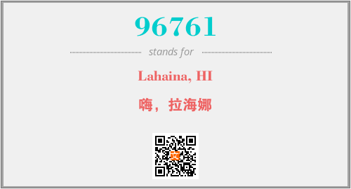上述内容是“Lahaina, HI”作为“96761”的缩写,解释为“嗨,拉海娜”时的信息,以及英文缩略词96761所代表的英文单词,其对应的中文拼音、详细解释以及在英文中的流行度和相关分类、应用领域及应用示例等。