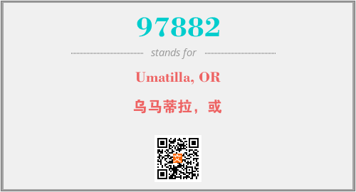 上述内容是“Umatilla, OR”作为“97882”的缩写,解释为“乌马蒂拉,或”时的信息,以及英文缩略词97882所代表的英文单词,其对应的中文拼音、详细解释以及在英文中的流行度和相关分类、应用领域及应用示例等。