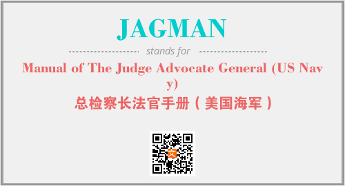 英文缩略词“JAGMAN”经常作为“Manual of The Judge Advocate General (US Navy)”的英文缩写来使用,中文表示:“总检察长法官手册(美国海军)”。本文将详细介绍英文缩写词JAGMAN所代表英文单词,其对应的中文拼音、详细解释以及在英语中的流行度。此外,还有关于缩略词JAGMAN的分类、应用领域及相关应用示例等。