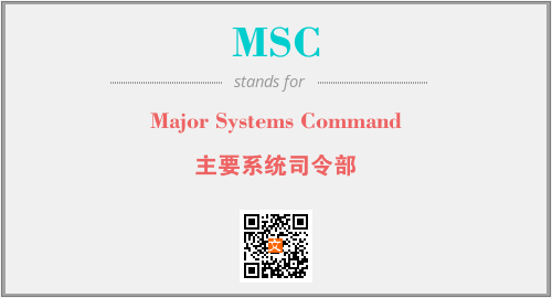 英文缩略词“MSC”经常作为“Major Systems Command”的英文缩写来使用,中文表示:“主要系统司令部”。本文将详细介绍英文缩写词MSC所代表英文单词,其对应的中文拼音、详细解释以及在英语中的流行度。此外,还有关于缩略词MSC的分类、应用领域及相关应用示例等。