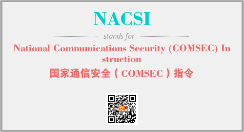 英文缩略词“NACSI”经常作为“National Communications Security (COMSEC) Instruction”的英文缩写来使用,中文表示:“国家通信安全(COMSEC)指令”。本文将详细介绍英文缩写词NACSI所代表英文单词,其对应的中文拼音、详细解释以及在英语中的流行度。此外,还有关于缩略词NACSI的分类、应用领域及相关应用示例等。