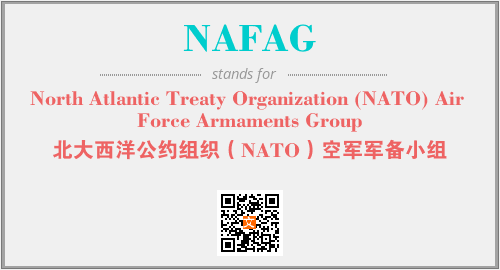 上述内容是“North Atlantic Treaty Organization (NATO) Air Force Armaments Group”作为“NAFAG”的缩写,解释为“北大西洋公约组织(NATO)空军军备小组”时的信息,以及英文缩略词NAFAG所代表的英文单词,其对应的中文拼音、详细解释以及在英文中的流行度和相关分类、应用领域及应用示例等。