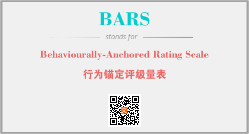 上述内容是“Behaviourally-Anchored Rating Scale”作为“BARS”的缩写,解释为“行为锚定评级量表”时的信息,以及英文缩略词BARS所代表的英文单词,其对应的中文拼音、详细解释以及在英文中的流行度和相关分类、应用领域及应用示例等。