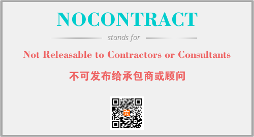 上述内容是“Not Releasable to Contractors or Consultants”作为“NOCONTRACT”的缩写,解释为“不可发布给承包商或顾问”时的信息,以及英文缩略词NOCONTRACT所代表的英文单词,其对应的中文拼音、详细解释以及在英文中的流行度和相关分类、应用领域及应用示例等。