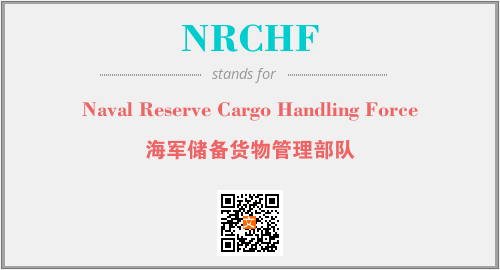 上述内容是“Naval Reserve Cargo Handling Force”作为“NRCHF”的缩写,解释为“海军储备货物管理部队”时的信息,以及英文缩略词NRCHF所代表的英文单词,其对应的中文拼音、详细解释以及在英文中的流行度和相关分类、应用领域及应用示例等。