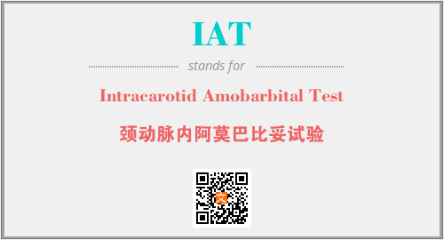 上述内容是“Intracarotid Amobarbital Test”作为“IAT”的缩写,解释为“颈动脉内阿莫巴比妥试验”时的信息,以及英文缩略词IAT所代表的英文单词,其对应的中文拼音、详细解释以及在英文中的流行度和相关分类、应用领域及应用示例等。