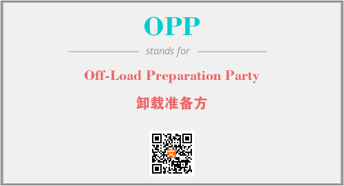 英文缩略词“OPP”经常作为“Off-Load Preparation Party”的英文缩写来使用,中文表示:“卸载准备方”。本文将详细介绍英文缩写词OPP所代表英文单词,其对应的中文拼音、详细解释以及在英语中的流行度。此外,还有关于缩略词OPP的分类、应用领域及相关应用示例等。