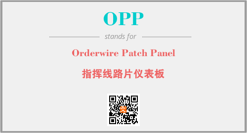 英文缩略词“OPP”经常作为“Orderwire Patch Panel”的英文缩写来使用,中文表示:“指挥线路片仪表板”。本文将详细介绍英文缩写词OPP所代表英文单词,其对应的中文拼音、详细解释以及在英语中的流行度。此外,还有关于缩略词OPP的分类、应用领域及相关应用示例等。