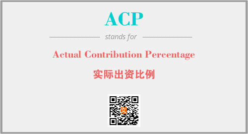 上述内容是“Actual Contribution Percentage”作为“ACP”的缩写,解释为“实际出资比例”时的信息,以及英文缩略词ACP所代表的英文单词,其对应的中文拼音、详细解释以及在英文中的流行度和相关分类、应用领域及应用示例等。
