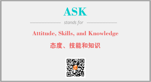 以上为Attitude, Skills, and Knowledge英文缩略词ASK的中文解释,以及该英文缩写在英语的流行度、分类和应用领域方面的信息。