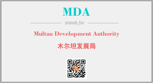上述内容是“Multan Development Authority”作为“MDA”的缩写,解释为“木尔坦发展局”时的信息,以及英文缩略词MDA所代表的英文单词,其对应的中文拼音、详细解释以及在英文中的流行度和相关分类、应用领域及应用示例等。