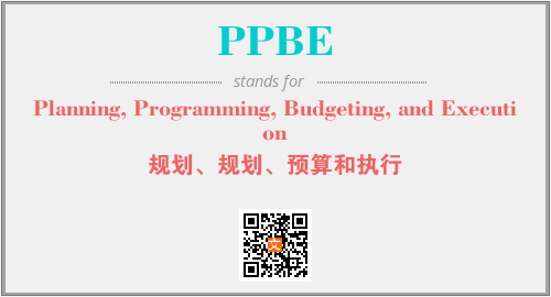 英文缩略词“PPBE”经常作为“Planning, Programming, Budgeting, and Execution”的英文缩写来使用,中文表示:“规划、规划、预算和执行”。本文将详细介绍英文缩写词PPBE所代表英文单词,其对应的中文拼音、详细解释以及在英语中的流行度。此外,还有关于缩略词PPBE的分类、应用领域及相关应用示例等。