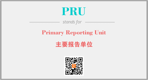 英文缩略词“PRU”经常作为“Primary Reporting Unit”的英文缩写来使用,中文表示:“主要报告单位”。本文将详细介绍英文缩写词PRU所代表英文单词,其对应的中文拼音、详细解释以及在英语中的流行度。此外,还有关于缩略词PRU的分类、应用领域及相关应用示例等。