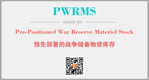 上述内容是“Pre-Positioned War Reserve Materiel Stock”作为“PWRMS”的缩写,解释为“预先部署的战争储备物资库存”时的信息,以及英文缩略词PWRMS所代表的英文单词,其对应的中文拼音、详细解释以及在英文中的流行度和相关分类、应用领域及应用示例等。
