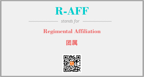 上述内容是“Regimental Affiliation”作为“R-AFF”的缩写,解释为“团属”时的信息,以及英文缩略词R-AFF所代表的英文单词,其对应的中文拼音、详细解释以及在英文中的流行度和相关分类、应用领域及应用示例等。