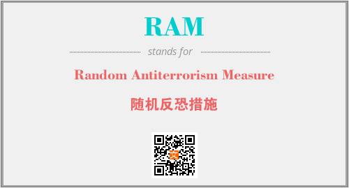 上述内容是“Random Antiterrorism Measure”作为“RAM”的缩写,解释为“随机反恐措施”时的信息,以及英文缩略词RAM所代表的英文单词,其对应的中文拼音、详细解释以及在英文中的流行度和相关分类、应用领域及应用示例等。